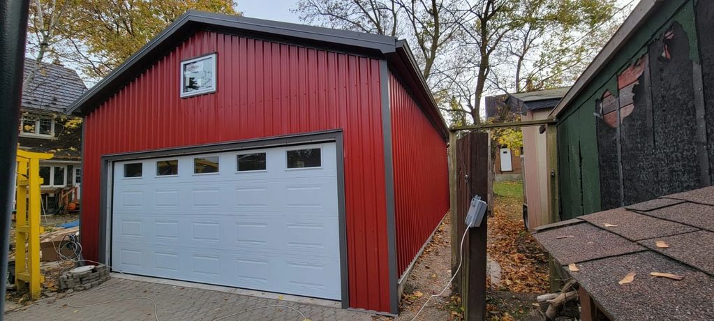What he got from Roma Steel was the perfect car garage with a loft inside for extra storage. We love the imperial red good choice!